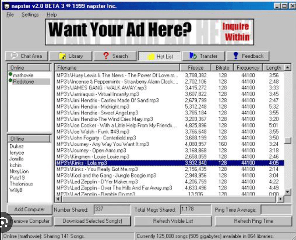 The Shift: They challenged the assumption that media distribution required centralized control by record labels and retailers. Napster proved that digital content could flow directly between users, breaking the gatekeeping power of traditional media intermediaries.