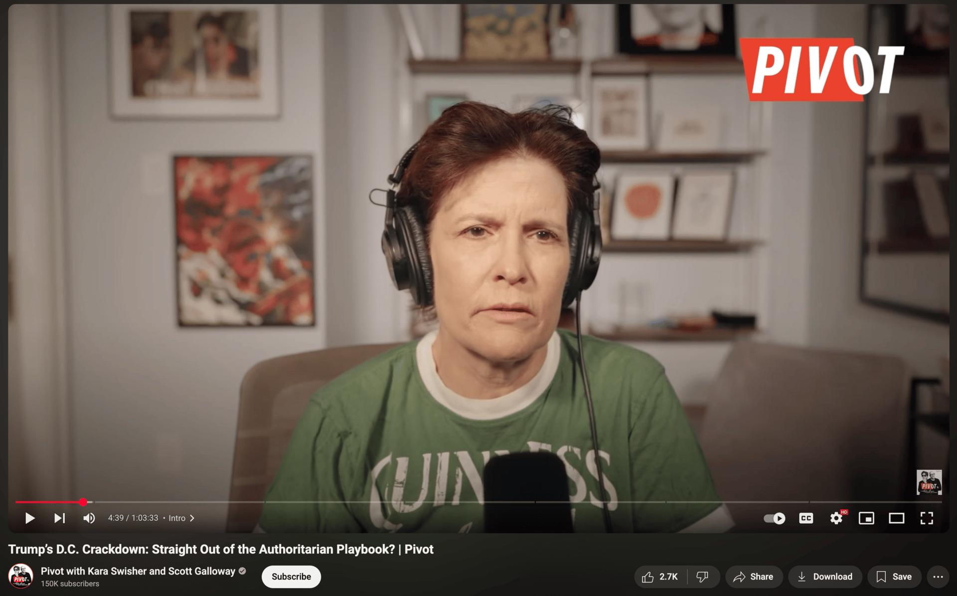 Kara Swisher on Pivot, quotes Tina Brown on what separates good writers - the discernment to see what matters in all the noise.