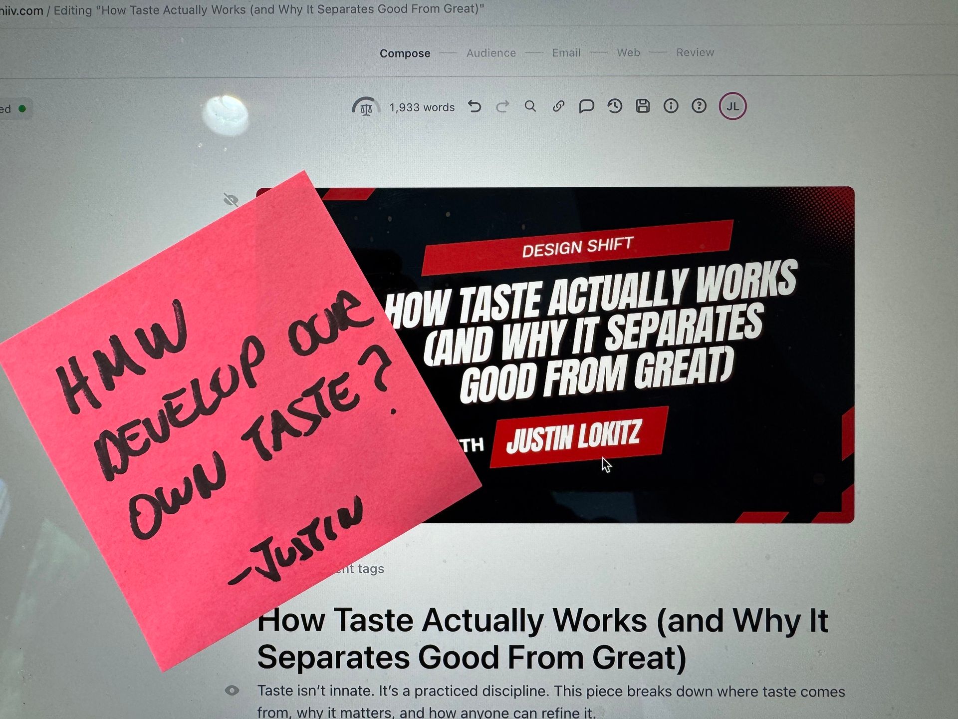 Taste has always been one of the most misunderstood parts of creative work. We talk about it as if it’s a fixed trait…something you either have or don’t. It’s often whispered as something magical and unattainable.