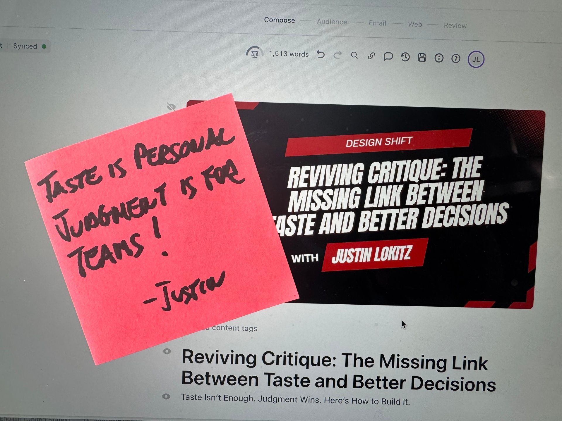 So…rather than jump to an entirely new design subject this week, I figured I would double down on the thread, but with a twist. Because taste on its own doesn’t create leverage. Judgment does. And…judgment comes from learning how to articulate your interior reasoning in a way others can understand, challenge, and eventually share.